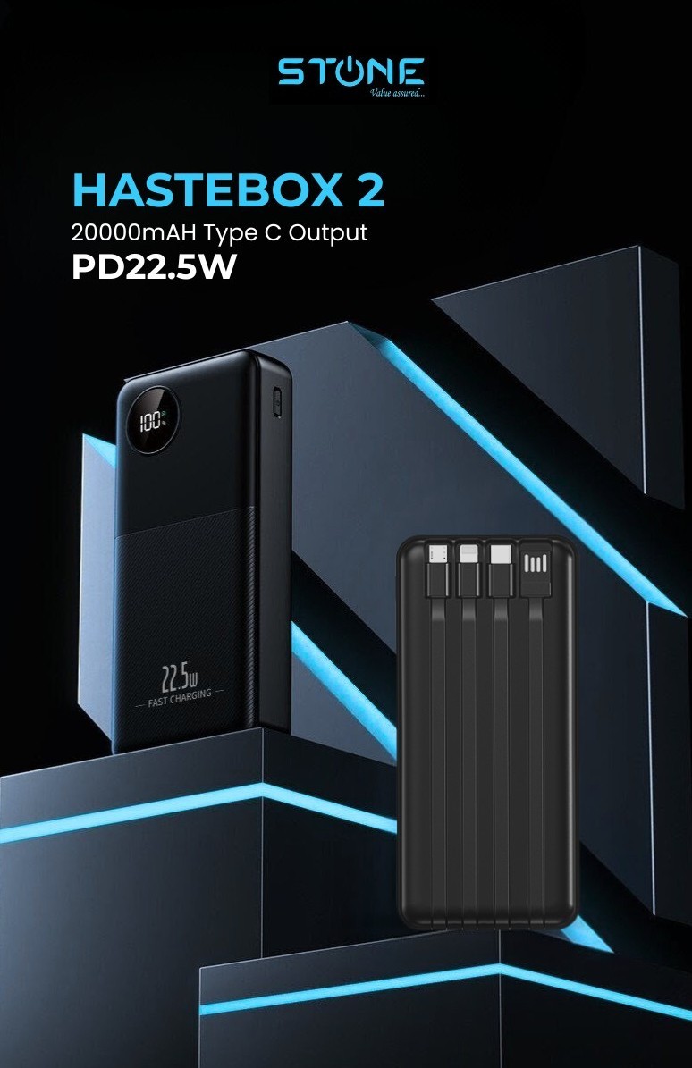 Meet HASTEBOX 2, the smart high-capacity power bank designed for people who can’t afford low-battery moments. With a strong 20,000mAh capacity, it delivers multiple reliable charges for your phone and other devices, keeping you powered throughout the day wherever you go.